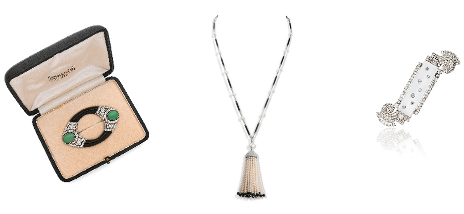 A stunning jadeite, onyx, and diamond brooch by Maison Boucheron (estimated at €20,000–30,000), a one-of-a-kind rock crystal and diamond brooch by Van Cleef & Arpels, valued at €40,000–50,000, and, once more by the same Maison, a magnificent sautoir estimated at €40,000–60,000, should captivate collectors who are passionate about Art Deco.
