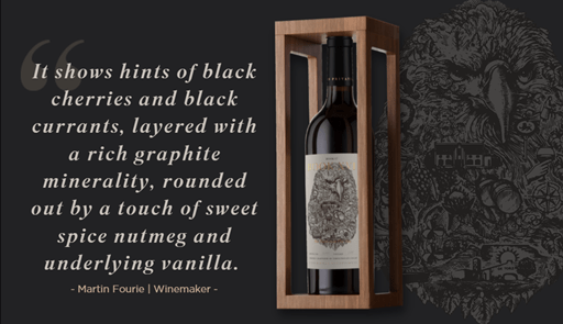 An outstanding wine from an exceptional vintage. There is a bouquet of dark, perfumed blackberries, plum, vanilla, and a hint of sweet oak spice on the nose. This wine delights with a dense yet vibrant palate and flavoursof minerality, blueberries, and freshly ripened black current.”