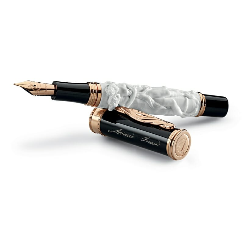 Bring personality to prestige with a selection of precious metals and exotic varieties of celluloid, marble, wood and mammoth ivory. Exclusive deco options are also on the palette, and personal engraving can be added to a special custom capband, ink bottle and walnut presentation case.