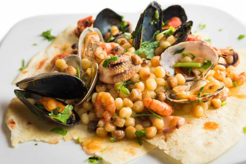 Seafood dishes reign supreme in Sardinia and seafood fregola is a must-try. Fregola is a type of pasta found in Sardinia, which is similar to Israeli couscous. It is made with durum wheat semolina that is rolled into 2-3 mm sized balls in a large ceramic pot, then toasted in the oven which imparts a nuttiness flavour. While fregola is served with a wide range of foods, amongst the most popular is with freshly caught seafood, including clams, scallops, and cockles, served in a tomato-based broth, and garnished with fresh chopped herbs.