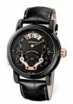 The movement’s Haute Horlogerie ornamentation, such as “Côte de Genève,” satin-brushing, circular graining, round satin and polished chamfers, as well as the collection’s exclusive 22-carat pink gold oscillating weight, are visible through the sapphire caseback.