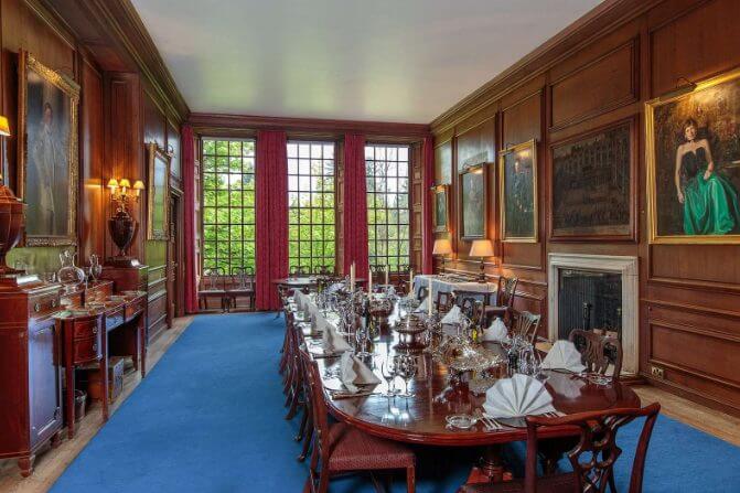 The small dining room, accessible from the ground floor entrance hall, is accented with a vaulted ceiling and small windows, implying that this is the location of the original building, which dates back to the 12th century. This was the former kitchen, but Alexander Edward converted it into a Porter’s lodge during the house’s reconstruction in 1711. During the early 1960s renovations by the 16th Earl and Countess of Dalhousie, it was transformed into a small dining room.