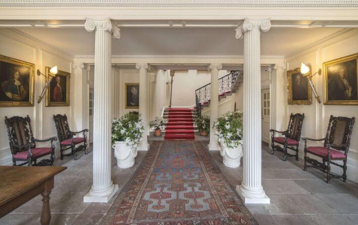 When you enter the Castle, you are greeted by Edward’s original panelled walls and impressive columns added after the initial restoration. Furthermore, the ceiling appears to be from Alexander Laing’s reparations in 1797. The imposing staircase leads up from the ground-floor Entrance Hall to the first-floor landing, which houses a large collection of traditional artwork, mostly family portraits. The staircase is in excellent condition and still has the striking ironwork balustrades that were installed in 1659.