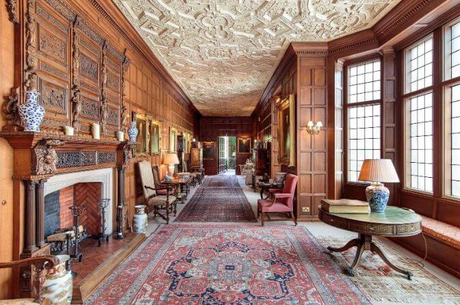 The main reception rooms are on the first floor, all of which lead from the gallery, which was restored by the 14th Earl and Countess.