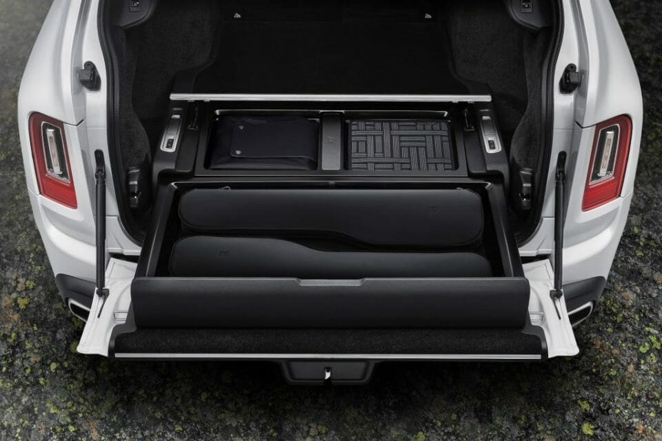 If you finds yourself at an outdoor performance, or even a trackside at a motorsport event, a discreet pocket on the outer leather seat provides a secure ticket repository. In the event of extra time, stills and curtain-calls, a thin aluminium torch, finished with a double-R Honour badge, is stored in the seat hinge, ensuring a safe return to your motor vehicle.