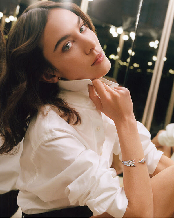 This stylishly elegant bracelet for everyday features from its point to the notch, a clasp-free bracelet that is paved with 162 round diamonds, wrapping around the wrist in a flawless sweeping gesture. The cutting-edge character of the arrow conveys a contemporary feeling in a design that will always be in style. This lovely bracelet is made up of 203 round diamonds for a total of 2.51 carats Made of 18K white gold