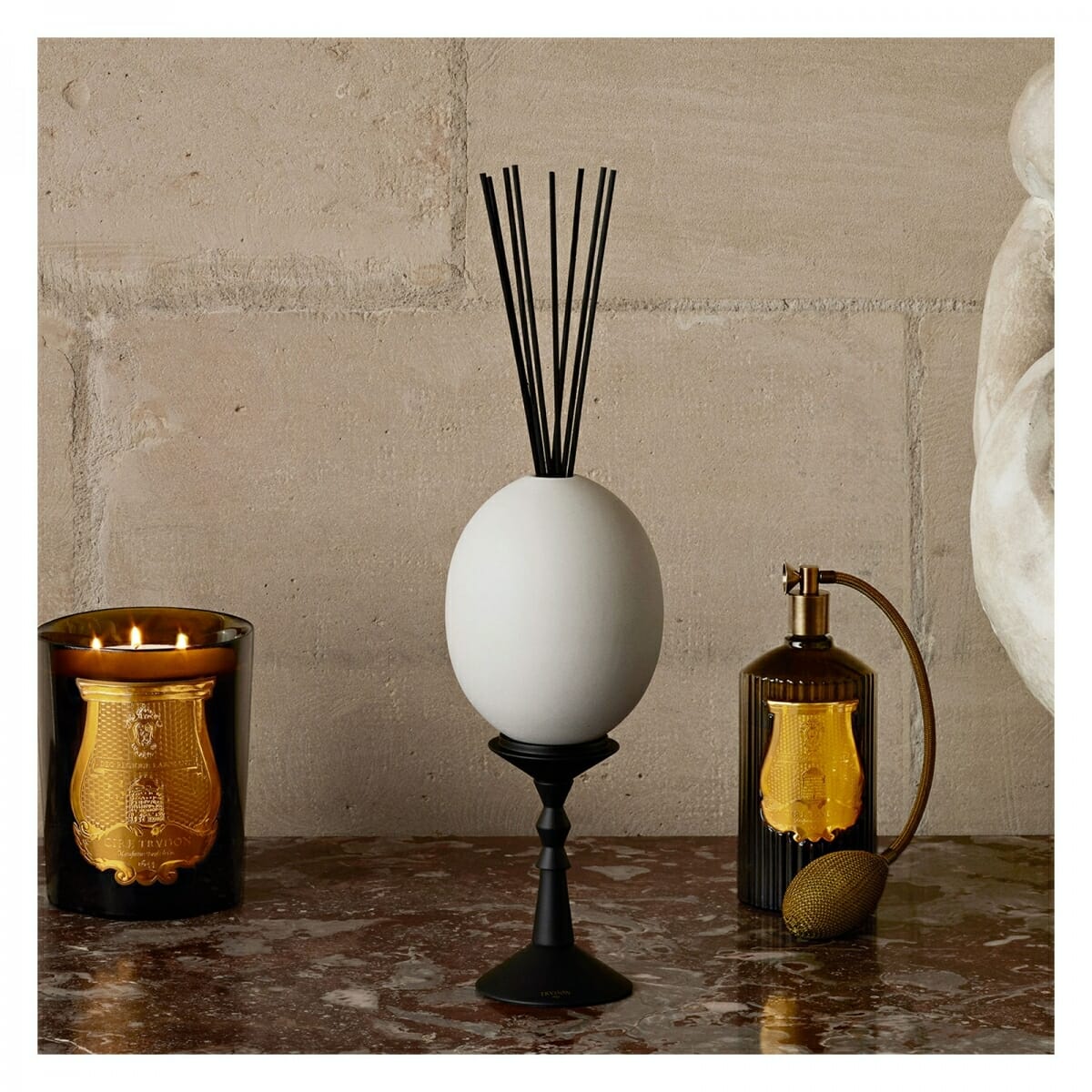 The collection consists of: an unglazed ceramic egg, a painted wooden frame, 8 reeds, a 300 ml bottle of fragrance and a funnel. Lasting more than 3 months of diffusion.