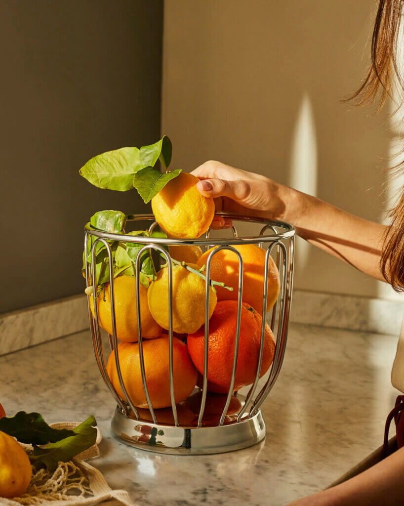 Their bright colour and friendly shape are a lovely accent in home decor. An array of lemons displayed in a bowl, silver urn, basket or other favoured vessel that suits your decor brings a burst of colour to a neutral palate or any kitchen space or home bar. Ideally use fresh if you’re going to be using them up before they spoil. Whole, fresh lemons can be kept for up to a week at room temperature. Lemons can also be frozen for three to four months or kept in the refrigerator for 4-6 weeks. There are also lovely faux decorative lemons that will always hold their shape and colour.