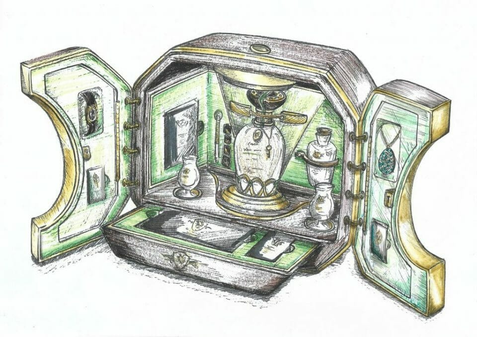 Each bespoke set is presented in an exquisite experience box which has been inspired by the shape of an emerald designed to represent the natural beauty of Ireland, and features an illustration of one of the ‘wonders’ of Ireland and its geographical coordinates, with a frontal egg-shaped aperture and a frame of coloured gemstones. Inside each box is the pièce de resistance, the hand-crafted whiskey bottle containing the ‘liquid gold,’ a collector’s item in its own right. Each of the seven bottles has been inspired by key Fabergé design elements,set with responsibly sourced emeralds from Gemfields’ Kagem mine in Zambia on the neck and lower most part of the bottle.